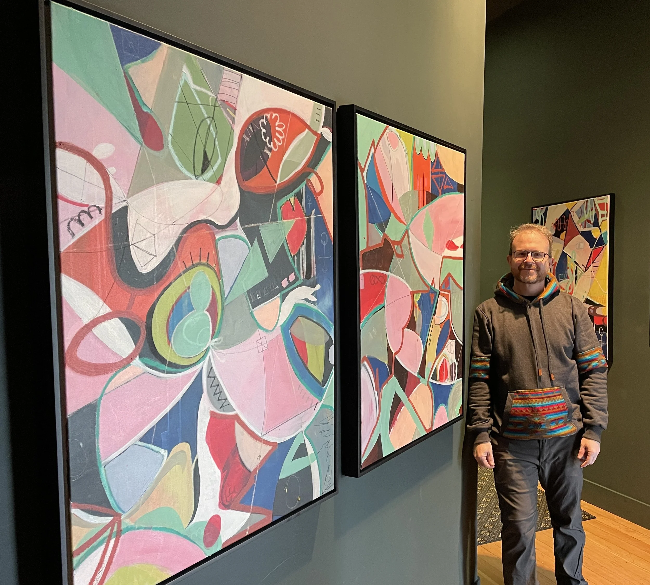 I kept at it. A few years back I got back into abstract painting with acrylics. I felt so at home in it that I just kept doing it. I studied other artists and teachers, as much as I could with my still-recovering vision and brain energy. I couldn’t get enough. It’s super fun.